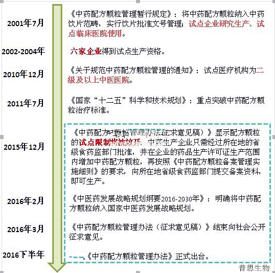 不過,好消息終于來了,2016年3月1日《中藥配方顆粒管理辦法(征求意見稿)》結(jié)束向社會公開征求意見,2016年下半年將正式出臺,這意味著行業(yè)開放的趨勢已明朗,那些唇唇欲動的藥企終于可以分一杯羹了。