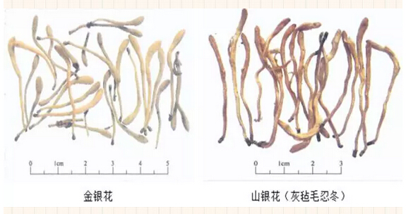 時(shí)至今日,說(shuō)到忍冬,除了代指金銀花,還不得不提到山銀花,這個(gè)在2005版《中國(guó)藥典》中“新崛起”的同胞小伙伴!山銀花為忍冬科植物灰氈毛忍冬L. macranthoides Hand.-Mazz.、紅腺忍冬L. hypoglauca Miq.、華南忍冬L. confuse DC.的干燥花蕾或帶初開的花。在之后的增補(bǔ)版中又新增黃褐毛忍冬L. fulvotomentosa Hsu et S.C.Cheng,后持續(xù)至今。