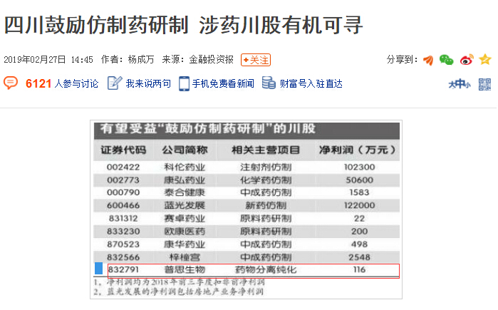 四川省政府近日出臺的《關(guān)于支持重大新藥創(chuàng)制國家科技重大專項成果轉(zhuǎn)移轉(zhuǎn)化工作的通知》(以下簡稱《通知》)提出,鼓勵仿制臨床必需、療效確切、供應(yīng)短缺的藥品,優(yōu)先仿制重大傳染病防治和罕見病治療所需藥品、處置突發(fā)公共衛(wèi)生事件所需藥品、兒童使用藥品以及專利到期前一年尚沒有提出注冊申請的藥品。鼓勵將仿制藥品目錄內(nèi)臨床急需的化學(xué)藥品和生物藥品關(guān)鍵共性技術(shù)研究及產(chǎn)品研發(fā)列入相關(guān)科技規(guī)劃和研發(fā)計劃,支持產(chǎn)學(xué)研單位申報國家相關(guān)科技計劃。對仿制藥企業(yè)符合西部大開發(fā)或高新技術(shù)企業(yè)優(yōu)惠政策的,減按15%的稅率征收企業(yè)所得稅。做好與藥品采購、醫(yī)保支付等改革政策的銜接,促進仿制藥企業(yè)不斷增強科技創(chuàng)新能力,推動轉(zhuǎn)型升級。《金融投資報》記者梳理后發(fā)現(xiàn),目前川內(nèi)涉藥企業(yè)中包括了部分A股上市公司和新三板掛牌公司,隨著上述政策落地實施,涉藥川股有機可尋。