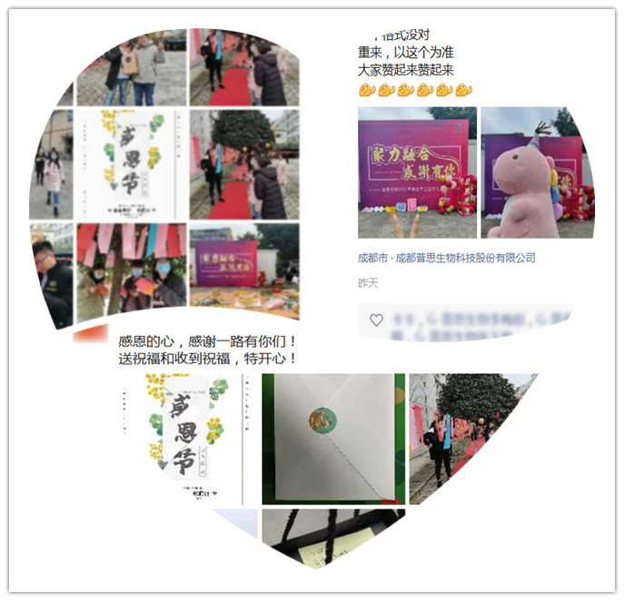 按要求發(fā)送主題“感恩的心,感謝有你”的朋友圈進行集贊,排名前10將獲獎同事將獲得精美禮品一份。朋友圈集贊活動不僅是為了獲得精美禮品,更是感恩同事,朋友,家人的默默付出。