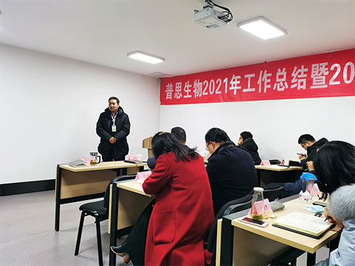 2022年1月14日,普思生物在二期三樓多功能會(huì)議室召開了2021年度工作總結(jié)會(huì)議。出席會(huì)議的有:董事長(zhǎng)兼總經(jīng)理劉丁先生、財(cái)務(wù)總監(jiān)劉君女士、副總經(jīng)理鐘鈺女士、副總經(jīng)理朱永紅先生、部門總監(jiān)肖斌先生、總經(jīng)理助理張玉梅女士以及公司各部門管理人員共計(jì)20余人。本次會(huì)議主要是圍繞2021年的工作進(jìn)行總結(jié),同時(shí)對(duì)2022全年的工作進(jìn)行部署。