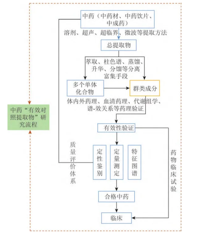 《中國(guó)藥典》2020年版將對(duì)照提取物定義為經(jīng)特定提取工藝制備的含有多種主要有效成分或指標(biāo)性成分,用于中藥材 (含飲片)、提取物、中成藥等鑒別或含量測(cè)定的國(guó)家藥品標(biāo)準(zhǔn)物質(zhì),豐富了對(duì)照提取物的內(nèi)涵,增強(qiáng)對(duì)照提取物應(yīng)用于中藥質(zhì)量標(biāo)準(zhǔn)的科學(xué)性。