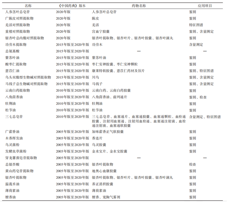 2、《中國(guó)藥典》收載的28種對(duì)照提取物應(yīng)用情況
