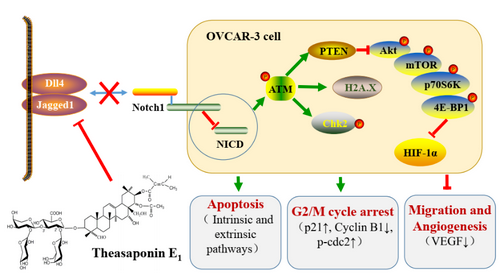 圖1 茶皂素E1對OVCAR-3人卵巢癌細胞抗癌作用的示意圖[1]
