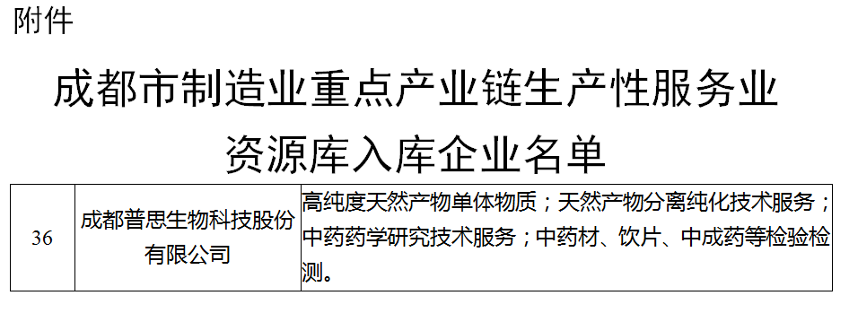 喜報(bào)!成都普思生物入選成都市制造業(yè)重點(diǎn)產(chǎn)業(yè)鏈生產(chǎn)性服務(wù)業(yè)資源庫(kù)