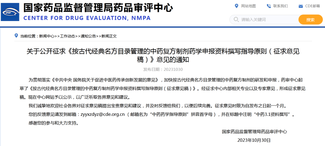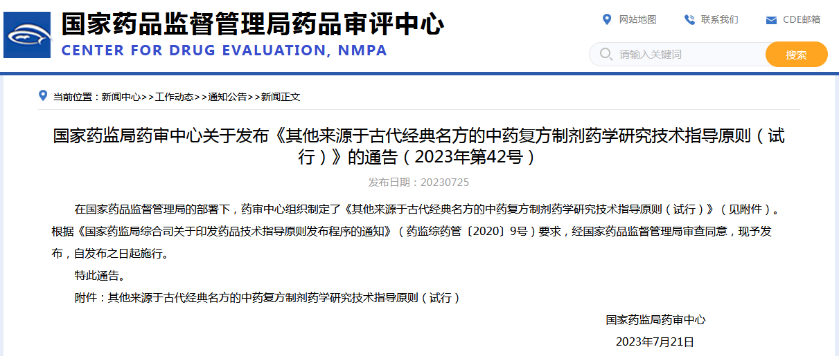 CDE發(fā)布3個關(guān)于中藥的指導(dǎo)原則征求意見稿